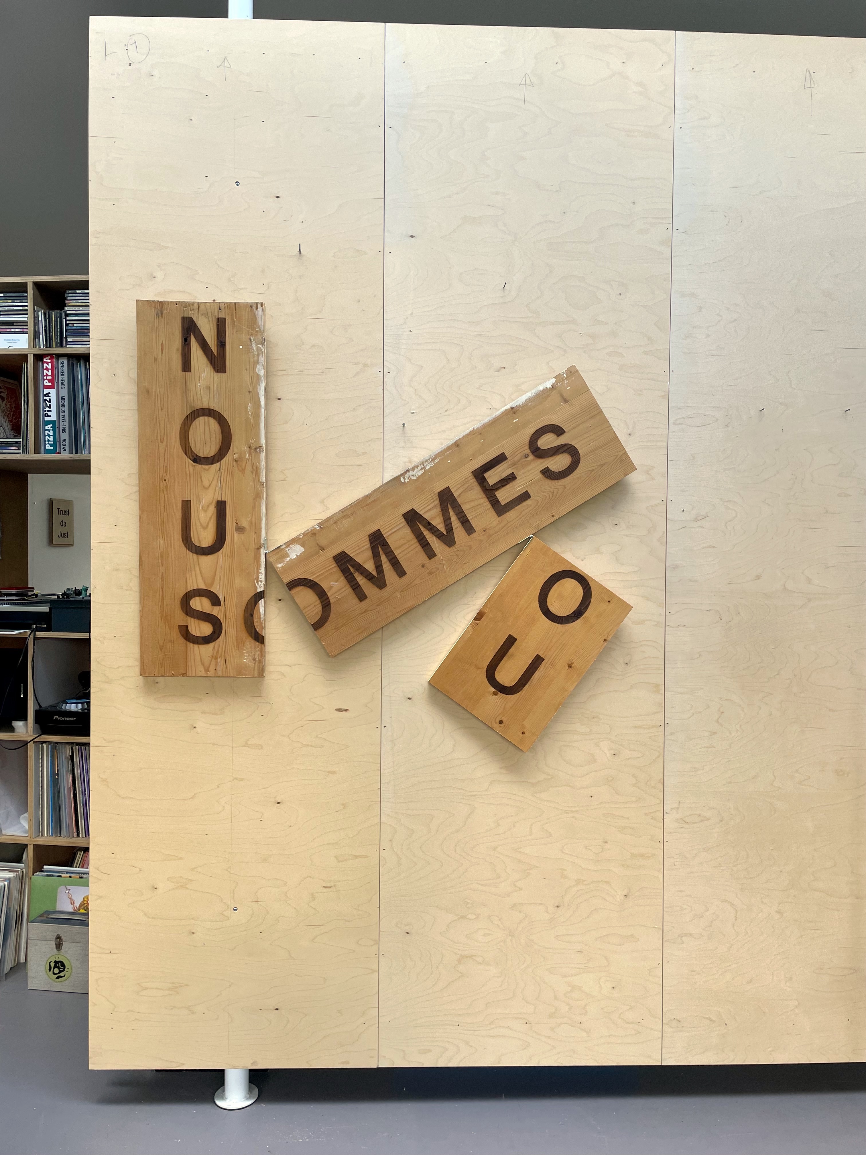 Nousommesou, 2024, laser etched salvaged wood, dimensions variableNousommesou, 2024, laser etched salvaged wood, dimensions variable